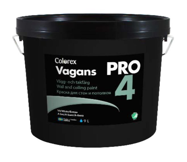 Ваганс Про 4 – водорастворимая, стирол-акрилатная, адаптированная для профессионального использования, матовая краска с высокой механической стойкостью, укрывистостью и белизной.