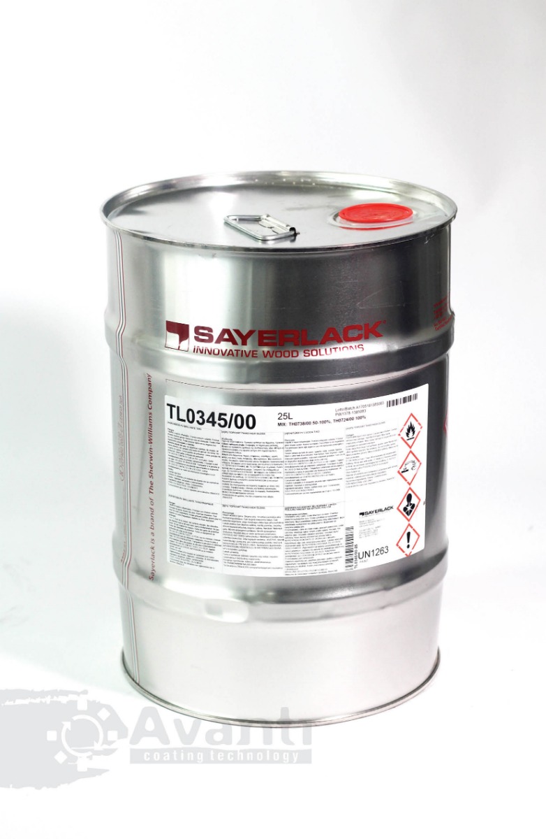 Лак TL 345 имеет наивысшую скорости сушки и твердость покрытия, в сравнении с другими глянцевыми лаками. Он хорошо подходит для областей применения, требующих стойкости к царапинам (например, столешниц) или быстрой сушки (багет, рамы, плинтус и т.п.). Возможна полировка лицевого слоя. Как указано в рецептуре, лак TL 345 отверждается с помощью 50-100% ТН 738. В жарких условиях рекомендуется 50 % отвердителя и до 40-50% растворителя при условии, что изделию не требуется полировка. И наоборот, зимой и при необходимости полировки изделия, требуется 100% отвердителя и 20-30% разбавителя. По условиям нанесения и требованиям к изделию возможна и промежуточная дозировка.