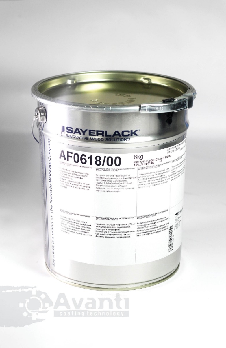 AF 618/00 – является водоразбавимым самогрунтующимся лаком, с низкой степенью блеска, прекрасно подходит для интерьеров внутри помещения. Материал специально разработан для тех случаев, когда в отделке необходимо достичь эффекта натурального дерева или “эффект необработанной древесины”, поскольку после нанесения сохраняется естественная красота древесины, и даже на ощупь покрытие практически неотличимо от натурального. Данный лак может быть использован и без отвердителя как однокомпонентный материал, то тогда немного снижается эффект натуральной древесины и ухудшается физико химическая стойкость покрытия. Лак AF 618/00 никак не меняет и не “поджигает” естественный цвет древесины. В состав материала входят смолы нового поколения, что делает его светостойким, а также придает устойчивость к химическим воздействиям. Для натурального эффекта и для светлых пород древесины и светлых шпонированных поверхностей