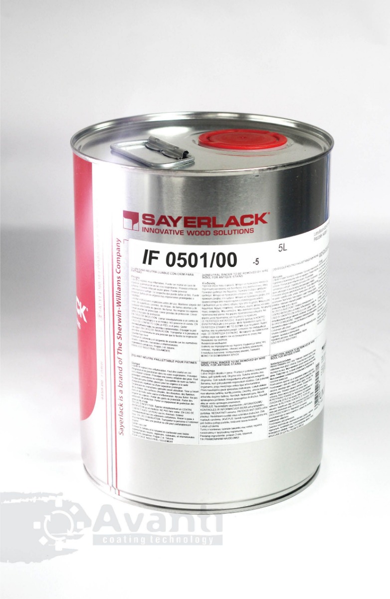 IF 501/00 содержит в своём составе компоненты, которые при слишком большой толщине нанесённого материала могут давать белёсый/мутный оттенок, что искажает финишный цвет изделия. Поэтому наносить данный материал толстым слоем (более 160 г/кв.м.) на тёмные породы древесины, шпона либо на затонированные тёмными морилками деревянные поверхности не рекомендуется.