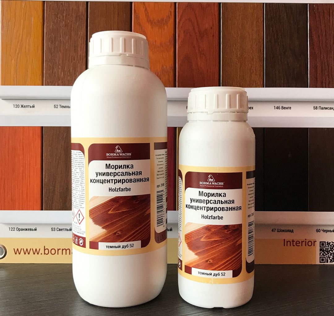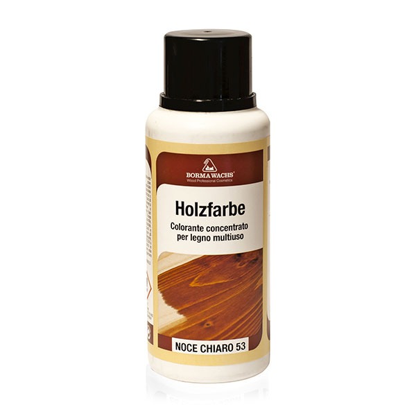 Borma Holzfarbe – краситель для тонирования деревянных поверхностей, эксплуатируемых внутри помещений. Материал подчеркивает натуральную красоту древесной структуры. Характеристики этого продукта позволяют избежать использования традиционных порошкообразных продуктов на основе анилина, что дает возможность обходиться без подготовки древесины и вдыхания вредного порошка. Раствор разбавляется любым растворителем: спиртом, ацетоном, или водой в соотношении 1:6. Может использоваться для колеровки прозрачных лаков.