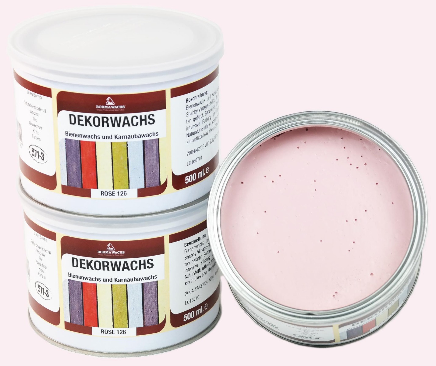 Пигментированный декоративный воск DEKORWACHS Borma Wachs содержит пчелиный воск и воск дерева карнаубы, разработан специально для создания винтажных эффектов в стиле Шебби. Содержит натуральные пигменты, позволяет создавать насыщенные яркие оттенки и эффекты патинирования. Активная натуральная структура материала питает/увлажняет древесину, а также помогает создать эффект декапе на обработанных поверхностях.