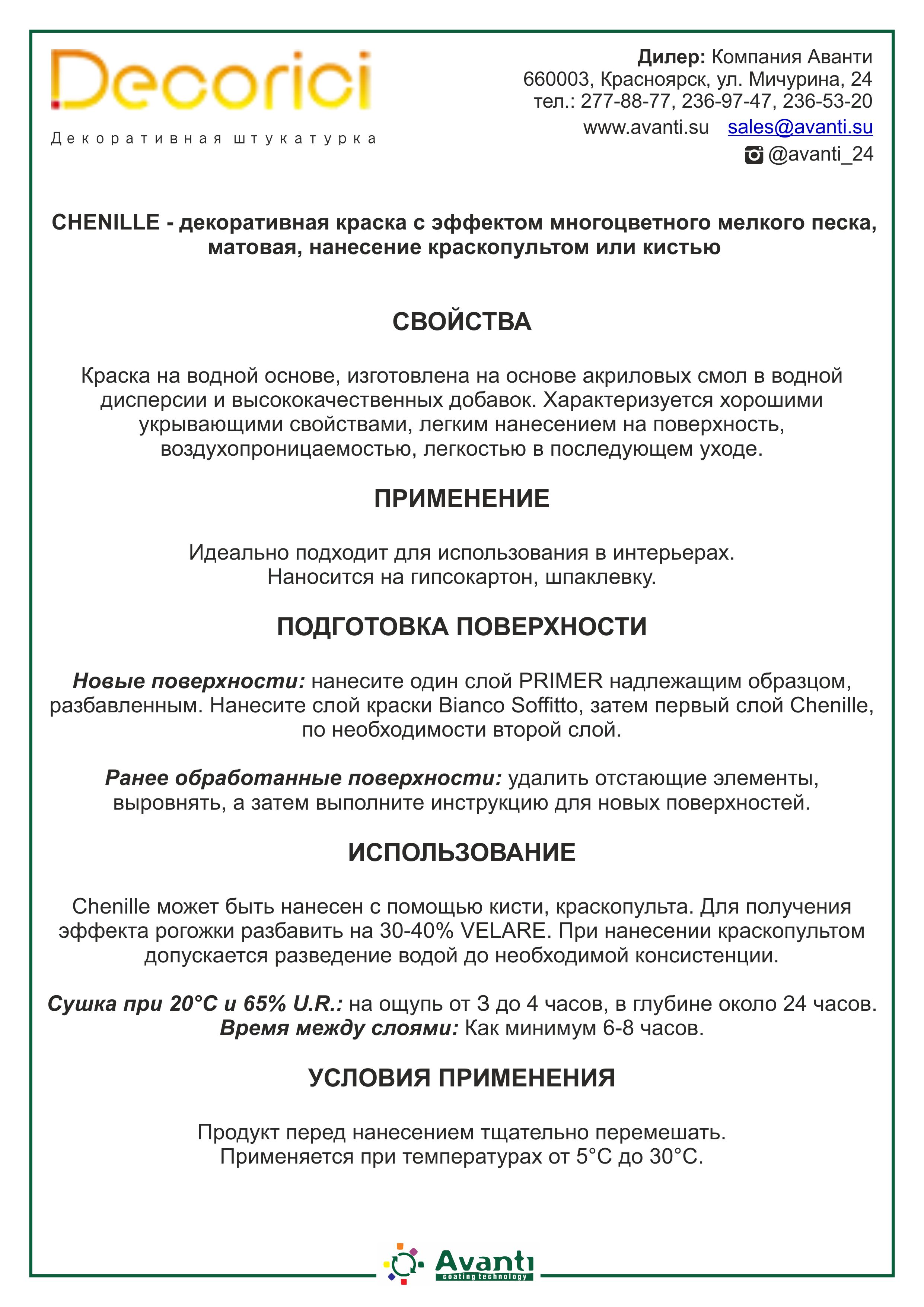 CHENILLE - матовое, полихромное, декоративное покрытие с эффектом бархата. Благодаря мельчайшим частичкам разных цветов, создаются сложные, глубокие оттенки покрытия. Нежная фактура подходит для любых интерьеров. Штукатурка наносится с помощью различных инструментов, в зависимости от небходимой фактуры: кисть, щетка, краскопульт.